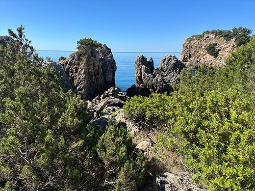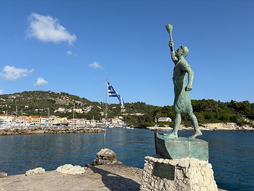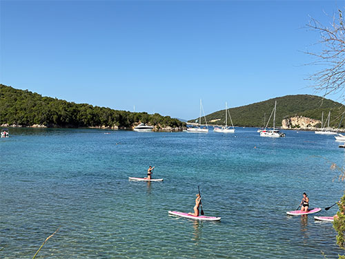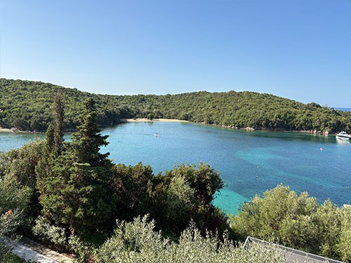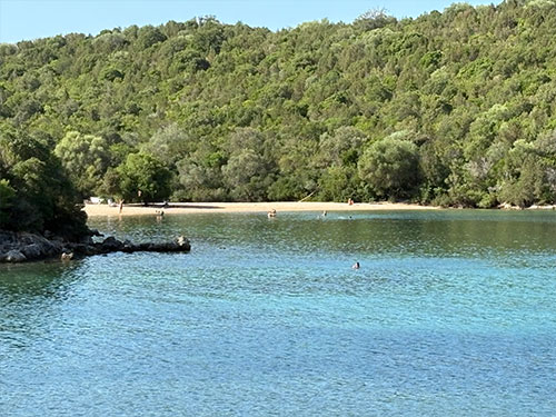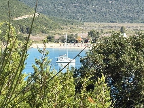 It roughly means ‘where the pigs graze’. This Sivota is a small village without pigs. There is a bit of tourism, but it is sophisticated. The offshore islands offer a wonderful water landscape. In a bay off the town harbour, we found a pleasant anchorage in 8 m deep, clear water on a sand/mud bottom with very good holding. In the many bays around, there are a few nice smaller hotels and, for their guests, a wonderfully sheltered sea and very beautiful sandy beaches.
